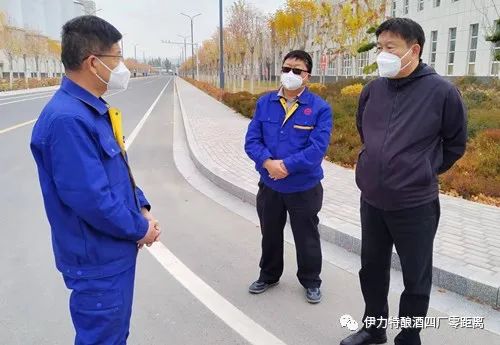 10月25日,伊力特公司黨委書記、董事長陳智,黨委副書記、總經理陳雙英,黨委委員、副總經理劉新宇一行到釀酒四廠調研督導疫情防控與安全生產等工作。釀酒四廠廠長王剛、副廠長張曉宏陪同