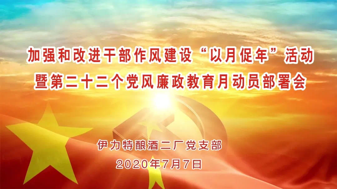 7月9日,伊力特釀酒一廠黨支部召開進一步加強和改進作風建設以月促年活動動員會,該廠業務人員參加了會議。 會上,黨支部書記馮劍宣讀了《伊力特實業股份有限公司關于進一步加