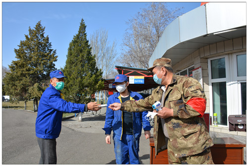 伊力特釀酒一廠扎實做好疫情防控工作 3月4日,在伊力特釀酒一廠員工住宿點看到,駐廠醫生宋麗萍親自將藥品送到員工黃勇和張勝平手中,他們非常感謝醫生熱情相助。這是伊力特釀